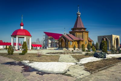 El monasterio Zavolzhskiy Svyato-Il'inskiy exhibe elementos arquitectónicos ortodoxos orientales con varios edificios dedicados a servicios religiosos y actividades monásticas.