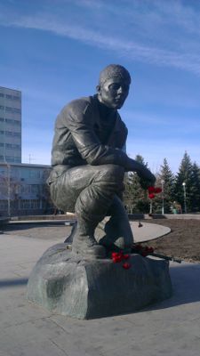 El memorial fue construido en los años 1990 tras la disolución de la Unión Soviética para conmemorar a los soldados locales que perdieron la vida.