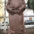 La figura surge del granito rojo tosco, mostrando el estilo escultórico prerrevolucionario de Merkurov mediante formas generalizadas.