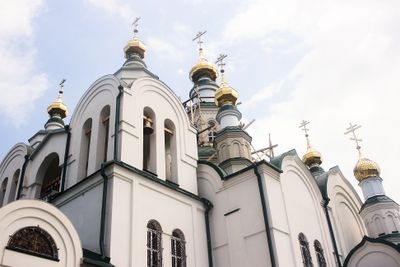 La Catedral Ortodoxa de San Nicolás presenta muros de piedra, cúpulas y cruces según los principios arquitectónicos ortodoxos rusos.