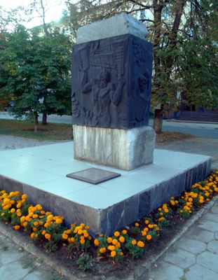 Monument at the burial place of the capsule with the appeal of Komsomol members to youth in 2017