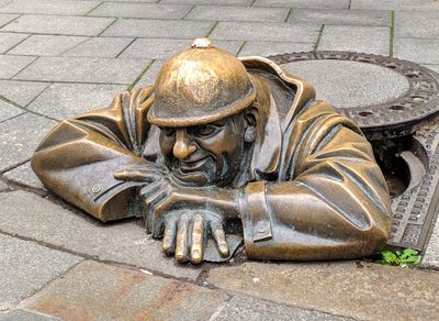 Čumil, Escultura de bronce en el Casco Antiguo, Eslovaquia