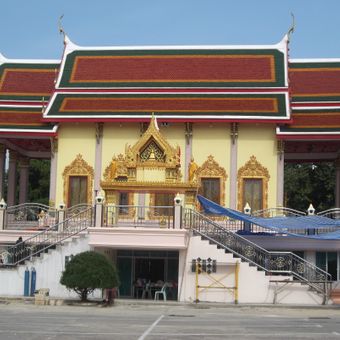 Los visitantes pueden acceder al templo mediante transporte público o taxis, con la entrada situada en la calle principal de Thanon Nakhon Chai Si.