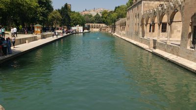 Balıklıgöl es una masa de agua en el corazón de Şanlıurfa alimentada por manantiales naturales que forman varios estanques interconectados llenos de carpas protegidas. El agua permanece clara, permitiendo ver los cientos de peces gris oscuro que nadan en toda la zona.