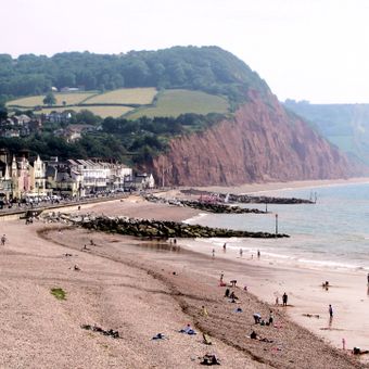 Sidmouth se ubica en acantilados de arenisca roja en la desembocadura del río Sid y cuenta con un paseo de aproximadamente tres kilómetros. Las playas de guijarros bordean la costa y están respaldadas por acantilados que dan a la ciudad su carácter particular.