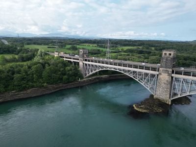 El Puente Britannia cruza el estrecho de Menai mediante una estructura de acero de dos niveles que mide 460 metros y conecta la isla de Anglesey.
