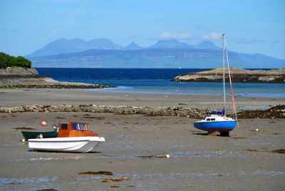 El servicio de ferry MV Lochnevis conecta las cuatro islas con el puerto continental de Mallaig mediante viajes programados durante la semana.