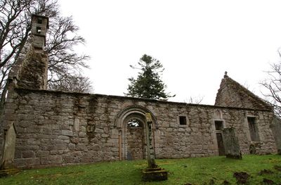 Situada entre Rhynie y Lumsden en Aberdeenshire, la iglesia conserva sus muros estructurales a pesar de perder su techo en el siglo XIX.