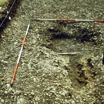 Dos montículos funerarios cerca del fuerte contienen 46 enterramientos romano-británicos y 8 sajones, demostrando siglos de importancia ceremonial continua.