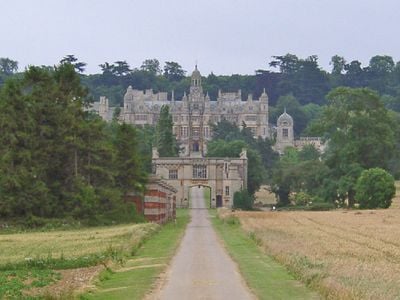 La mansión victoriana presenta una combinación de elementos arquitectónicos góticos, jacobetanos y barrocos, construida con piedra local de Ancaster.