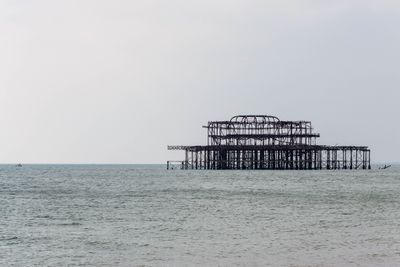 Los restos de hierro del muelle se extienden sobre el Canal de la Mancha, formando una estructura esquelética que emerge de las aguas.