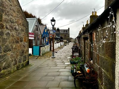 Footdee es un antiguo pueblo de pescadores situado en la entrada del puerto de Aberdeen, con más de 80 pequeñas casas dispuestas alrededor de plazas protectoras con las espaldas vueltas hacia el mar del Norte.