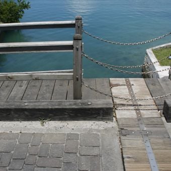 La sección central contiene una tabla de madera de 81 centímetros que se abre manualmente para permitir el paso de mástiles de veleros.
