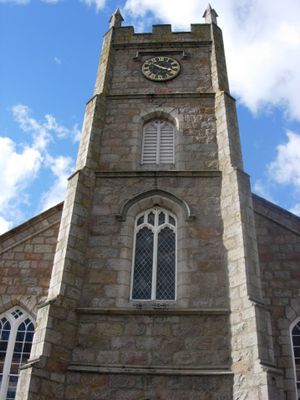 La campana de una estructura anterior de la iglesia de 1664 ahora se encuentra en la antigua torre de vigilancia dentro del cementerio.
