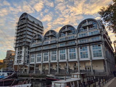 Baltic Quay se encuentra entre South Dock y Greenland Dock, con techos abovedados, ventanas circulares y una torre de 14 pisos.