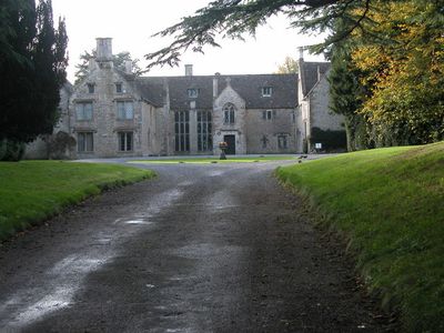 Chavenage House presenta arquitectura isabelina con muros de piedra Cotswold, ventanales y techos tradicionales de piedra que se extienden por varias alas.