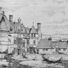 El edificio de arenisca roja y ladrillo presenta tejados inclinados de tejas rojas, torrecillas ornamentadas con cúpulas cónicas y una chimenea central.