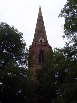 Greyfriars es una iglesia medieval en Coventry que destaca por su torre alta rematada con una espira octagonal, integrando parte de las tres torres historicas de la ciudad. El edificio conserva gran parte de su fabrica original y permanece como un punto de referencia importante en el centro urbano.