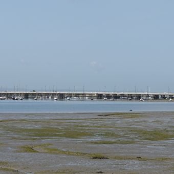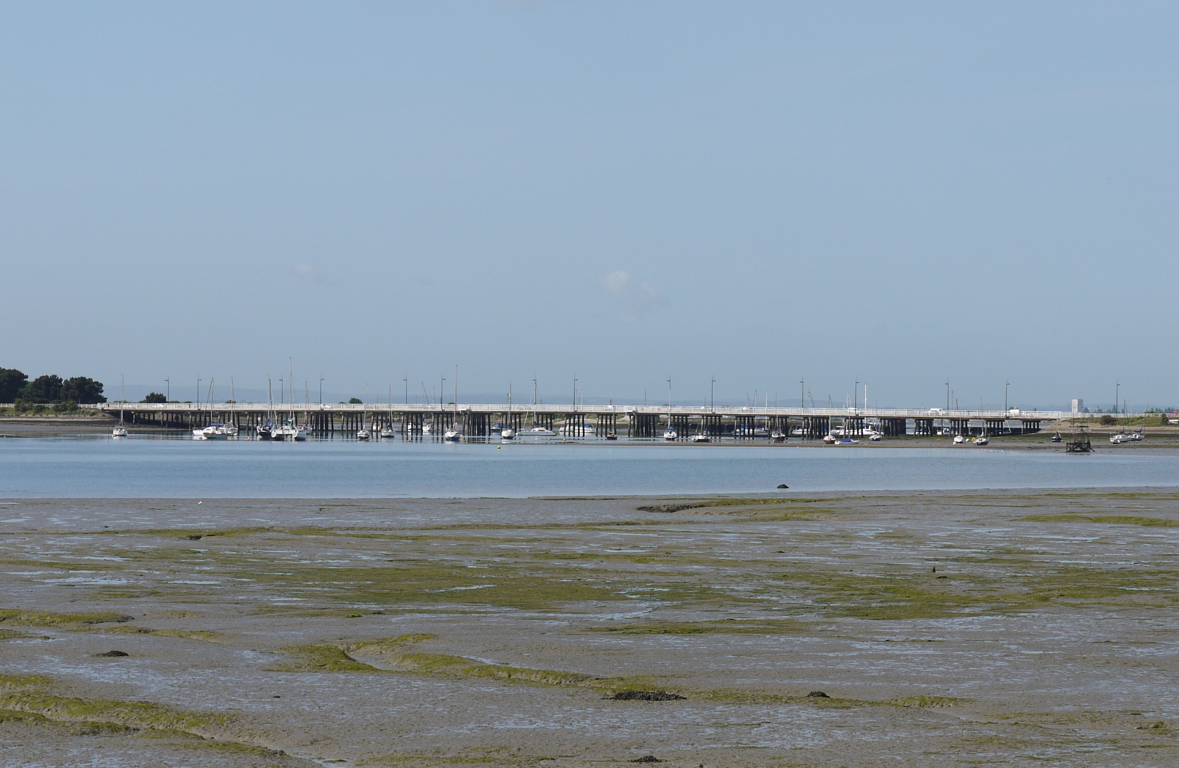 El puente de hormigón Langstone atraviesa el canal entre los puertos de Langstone y Chichester, conectando Hampshire continental con la isla Hayling.