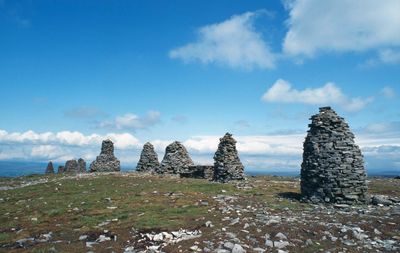 Los nueve característicos mojones de piedra en la cumbre aparecen en los mapas desde el siglo XVIII, posiblemente como marcadores entre las regiones de Westmorland y Swaledale.