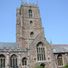 La iglesia presenta una torre central de cuatro niveles con contrafuertes diagonales, torre de escalera y ventanas individuales para campanas de 1443.