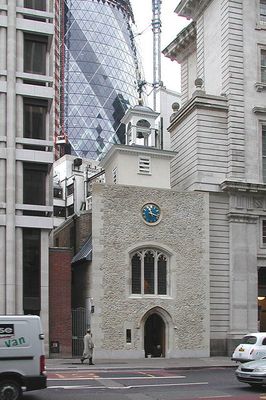 La iglesia, registrada por primera vez en 1250 como Santa Adelburga la Virgen, soportó una explosión de bomba del IRA en 1993.