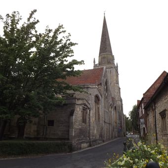 Tres conjuntos de asilos históricos rodean los terrenos de la iglesia: Long Alley de 1446, Twitty's de 1706 y Brick Alley de 1718.