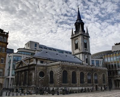 La iglesia medieval, destruida en el Gran Incendio de 1666, fue reconstruida por Christopher Wren entre 1670 y 1677 en estilo barroco inglés.