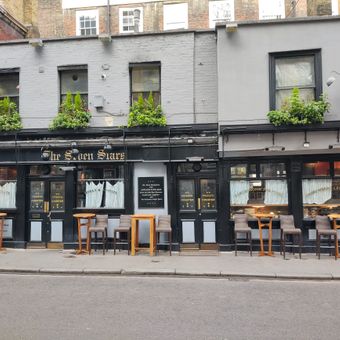 El Seven Stars ocupa un edificio de varios pisos con vigas antiguas y suelos de roble en el 53-54 de Carey Street, frente a los Tribunales Reales.