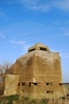 World War II minefield control tower 940m and pillbox 980m south east of Holliwell Farm