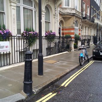 Two Bollards At North East And South East Corners Of Junction With Chesterfield Hill, City of Westminster, Greater London, W1J