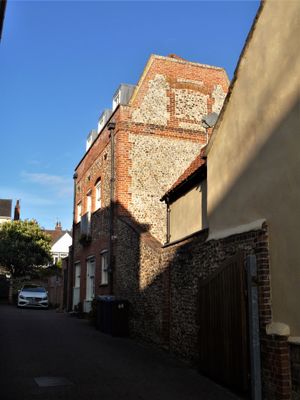 Premises Occupied By Piano Workshop/Salesroom Behind Number 65 And Attached Wall, building in Bury St. Edmunds, St. Edmundsbury, Suffolk, UK