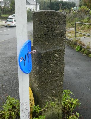 Milestone, Stokelake, 30m from road bridge of River Teign at jct with B3193