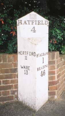 Milepost To West Of Junction With Royal Road, milestone in St. Albans, Hertfordshire, UK