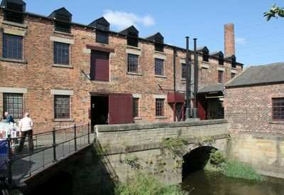Bridge Over Mill Stream To East Of Thwaite Mill With Retaining Wall On South Side Of Mill Race, bridge in Leeds, West Yorkshire, UK