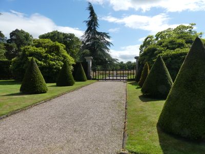 Pair of folding gates with screens and piers at south end of southern gardens, Grade II listed gates in the grounds of Eaton Hall, Eaton and Eccleston, Cheshire, UK