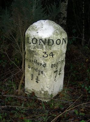 Milestone 34, milestone in Hartley Wintney, Hart, Hampshire, UK