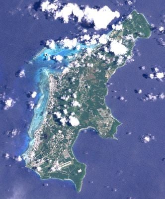 La isla pasó del control español al alemán en 1899, seguido del dominio japonés hasta 1944 cuando las fuerzas estadounidenses la capturaron durante la Segunda Guerra Mundial.