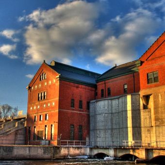 La presa Hardy es la mayor presa de tierra al este del río Mississippi, mientras el río Muskegon atrae pescadores de salmón.