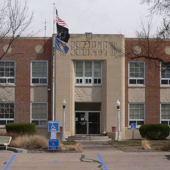 La Corte del Condado de Gosper en 507 Smith Avenue East en Elwood opera de lunes a viernes de 8:30 AM a 4:30 PM, brindando servicios gubernamentales.