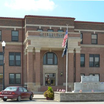El edificio de administración del condado en Linn alberga múltiples oficinas gubernamentales, incluyendo servicios de salud y gestión de emergencias.