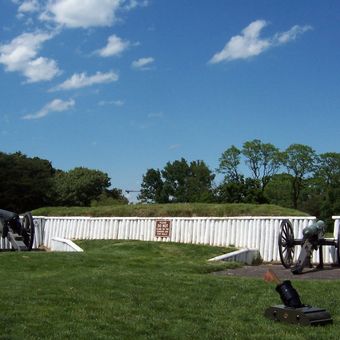El Fuerte Ward presenta murallas de tierra que se extienden 540 yardas con plataformas diseñadas para sostener 24 piezas de artillería.