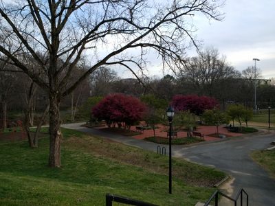El Sendero Memorial Infantil dentro del Parque Frazier contiene cerezos, esculturas y monumentos dedicados a los niños fallecidos de Charlotte.