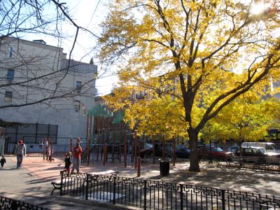 Hell's Kitchen Park ocupa 0.58 acres con zonas de juego, senderos y áreas de descanso entre las calles West 47 y 48 en la Décima Avenida.