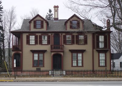 El edificio de estilo Greek Revival, construido en 1824 y comprado por Chamberlain en 1859, experimentó una transformación cuando fue trasladado hacia Maine Street en 1867.