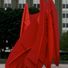 La estructura de acero rojo se eleva a 13 metros de altura y se extiende 16 metros de largo, con planos angulares que crean patrones geométricos.