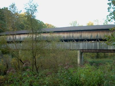 El Puente Cubierto de Middle Road, construido en 1868, permanece como uno de los dieciséis puentes cubiertos funcionales del Condado de Ashtabula.