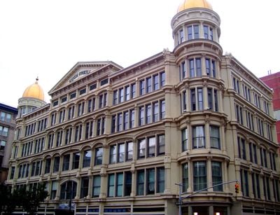 El Edificio O'Neill ocupa una manzana entera en 655 6th Avenue, con arquitectura neo-Grec, fachadas de hierro fundido y cuatro cúpulas doradas ornamentales.