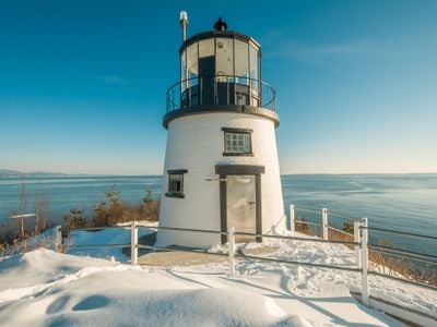 Los visitantes pueden explorar los terrenos del faro y el parque estatal de 13 acres, que ofrece vistas a la Bahía de Penobscot.