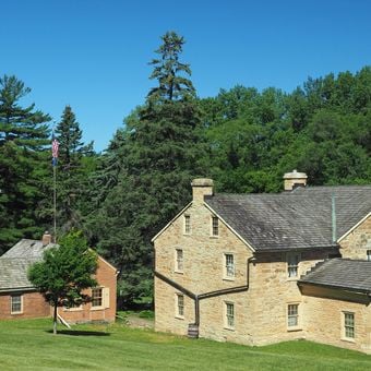El Sitio Histórico Sibley contiene cuatro edificios de piedra caliza ubicados en el acantilado del río Minnesota, incluyendo la residencia principal.